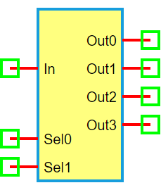 DEMUX = DEMUX1to4(In, Sel0, Sel1, Out0, Out1, Out2, Out3)